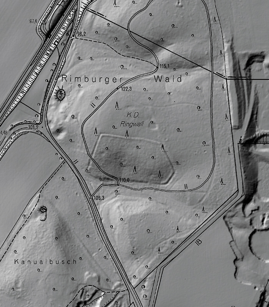 Das hiesige Grabenwerk könnte aber auch aus sehr viel jüngerer Zeit stammen, denn noch im Mittelalter legte man derartige Befestigungsanlagen an, beispielsweise als Fluchtburg, in die sich die ortsansässige Bevölkerung im Kriegsfall zurückziehen konnte. Datierendes Fundmaterial zum Rimburger Ringwall fehlt, denn hier – mitten im Naturschutzgebiet – haben nie archäologische Ausgrabungen stattgefunden.