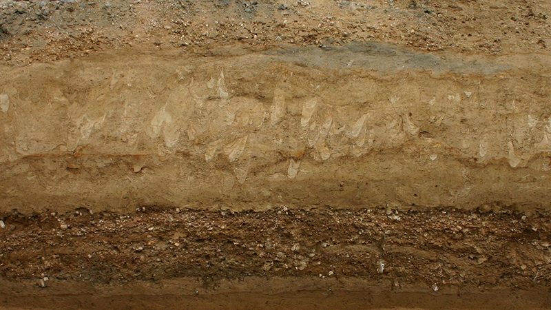 Die Anschüttungen über der Römerstraße stammen von der mittelalterlichen bis neuzeitlichen Weiternutzung der Straße. Deutlich zeigen sich auch hier tief eingegrabene Fahrspuren. Unmittelbar unter der heutigen Asphaltdecke findet sich das preußische Kopfsteinpflaster.