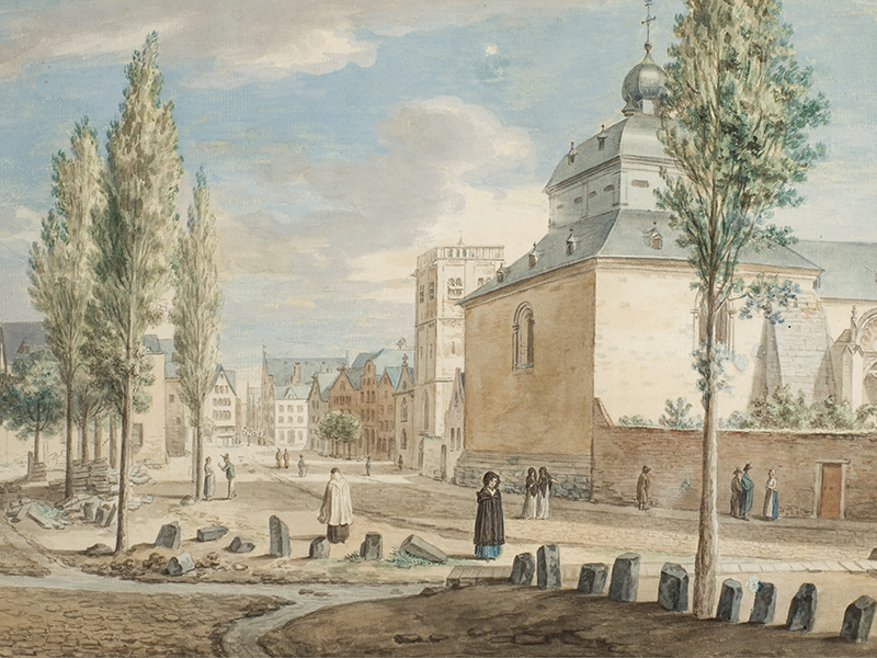 Seit dem 11. Jahrhundert steht hier St. Georg buchstäblich im Weg. Die Kirche ragt in die Sichtachse der Römerstraße und war deshalb für Reisende und Pilger von weither sichtbar. Die Straße wurde an dieser Stelle zu einem Platz ausgeweitet, dem Waidmarkt.