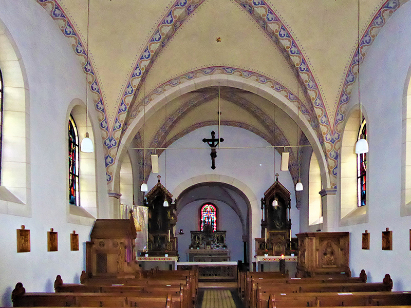 Besucher können das Innere der Kirche besichtigen. Hier ist unter anderem die Orgelempore, der Beichtstuhl, die Kanzel, Kommunionsbänke sowie der Haupt- und Seitenaltar zu sehen. Die Ausstattung stammt aus dem 19. Jahrhundert. Der Hauptaltar unterscheidet sich von anderen Altären seiner Art: Er befindet sich im Kirchturm und nicht wie sonst im Kirchenschiff. Außerdem ist der Turm nach Osten ausgerichtet – ebenfalls ungewöhnlich, denn normalerweise zeigt das Hauptschiff in diese Himmelsrichtung. Auf dem Friedhof, der zur Kirche gehört, stehen noch immer Grabkreuze und -platten aus dem 18. Jahrhundert.