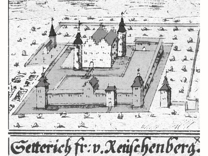DIm Jahre 1982, bei den ersten Arbeiten für das Altenwohnheim der katholischen Pfarrgemeinde Setterich, kamen die Grundmauern einer großen Burganlage zum Vorschein. Die Besitzverhältnisse lassen sich anhand historischer Quellen rekonstruieren: Eine Burg stand hier schon im 13. Jahrhundert und gehörte den Herren von Setterich, einer Nebenlinie der Herren von Stolberg. Durch Heirat kam dann die Herrschaft Setterich um 1375 an das Geschlecht derer von Reuschenberg, ein großes bedeutendes Rittergeschlecht aus dem Bergischen Land. Später waren noch verschiedene belgische Adlige Besitzer der Burg.