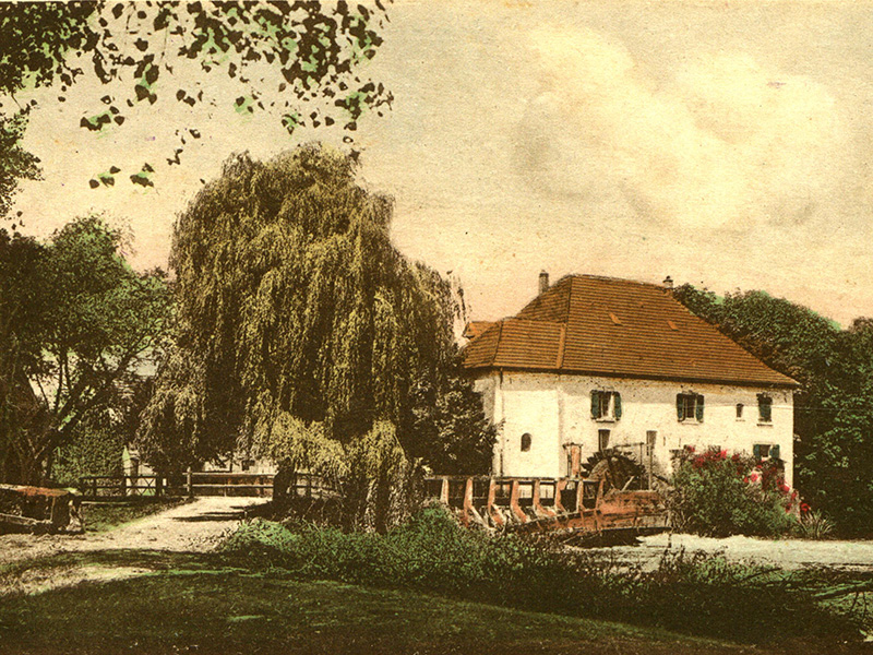 Erstmals taucht die Mühle um 1243 in der Chronik auf. Zu Beginn des 18. Jahrhunderts wurde die alte Mühle aufgegeben und 1715 wenige hundert Meter weiter nördlich durch ein neues Mühlengebäude ersetzt. Dieses ist heute noch vorhanden: Es besteht aus einer dreiflügeligen Hofanlage mit einem L-förmigen Wirtschaftsgebäudetrakt und einem Wohnhaus.