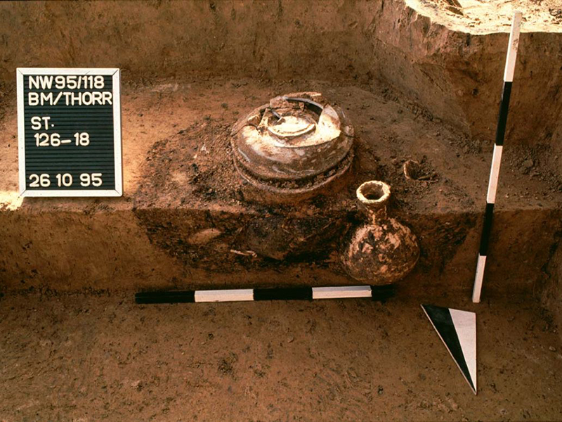 Grabsteine, die als Baumaterial für die alte Kirche in Thorr gedient hatten und bei deren Abbruch Anfang des 20. Jahrhunderts zum Vorschein kamen, stammen möglicherweise aus diesem Grabbezirk. Außerdem waren Reste eines römischen Merkuraltars und vieler Matronendenkmäler in der Kirche verbaut – es könnte sich also ein Heiligtum in der Nähe befunden haben.