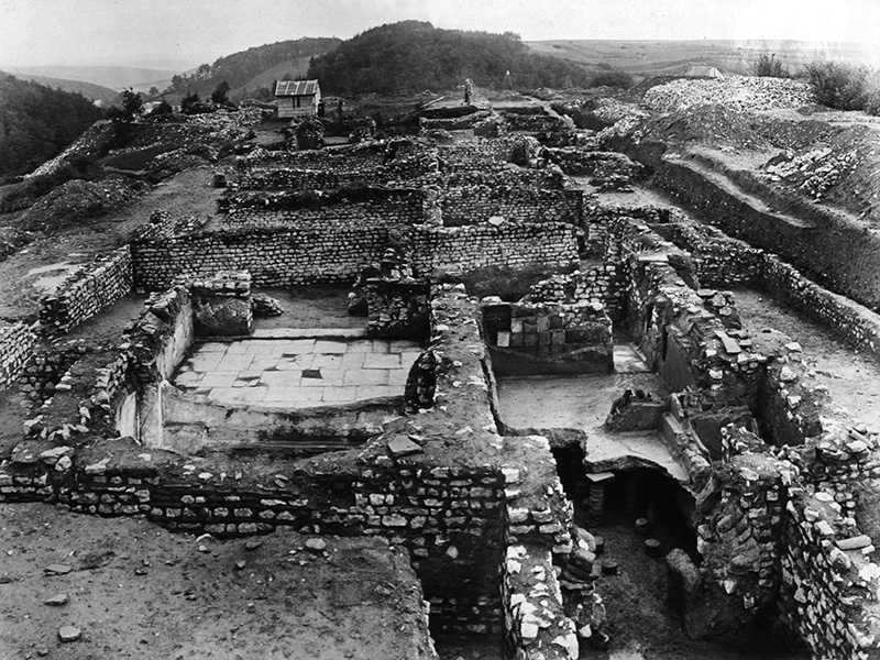 Erste archäologische Untersuchungen fanden bereits 1894 statt. Man beschloss, die außergewöhnlich gut erhaltenen Mauern des Hauptgebäudes zu erhalten und der Öffentlichkeit zugänglich zu machen. Das antike Mauerwerk verwitterte und verfiel jedoch sehr bald. Die Ausgrabungen des Jahres 1914 galten den älteren Bauphasen. Die Ende des 19. Jahrhunderts freigelegten Gebäudemauern sind teilweise heute noch im Boden vorhanden. Der Wirtschaftshof und die Nebengebäude wurden bis 1931 in mehreren Grabungskampagnen archäologisch untersucht.