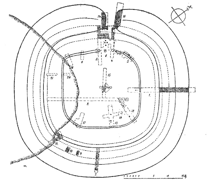 Gegen Ende des 3. Jahrhunderts fiel die Befestigung einem Brand zum Opfer, wurde aber später wieder aufgebaut. In der Ausbauphase des 4. Jahrhunderts hatte sie einen quadratischen Grundriss mit stark abgerundeten Ecken und einer Seitenlänge von 60 Metern. Zur Verteidigung gruben die Römer einen zehn Meter breiten und 3,5 Meter tiefen Spitzgraben. Die Erde aus dem Graben nutzten sie für die Anlage eines fünf Meter breiten Walls auf der Innenseite. Im Nordwesten, zur Straße hin, befand sich ein Zugang, der anscheinend mit einem hölzernen Tor gesichert war. Innerhalb der Befestigung wurden Bauspuren festgestellt. Vermutlich stand hier ein turmartiges Gebäude.