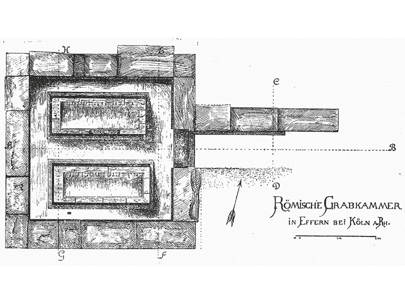 Mit dem Römergrab in der Kaulardstraße ist hier in Efferen eine der bedeutendsten, noch erhaltenen römischen Grabanlagen nördlich der Alpen zu sehen. Ursprünglich lag die Kammer direkt an der Agrippastraße. Arbeiter entdeckten sie 1899 beim Bau des Bahnhofsgebäudes für die Cöln-Bonner Kreisbahn (Vorgebirgsbahn). Die Grabkammer stammt wahrscheinlich aus dem späten 3. oder 4. Jahrhundert.