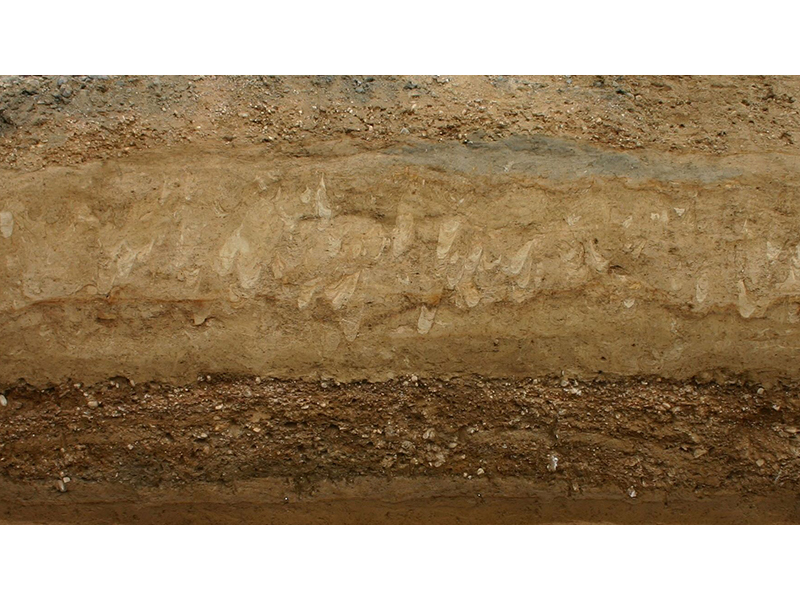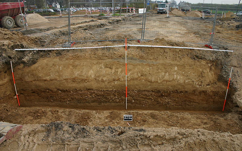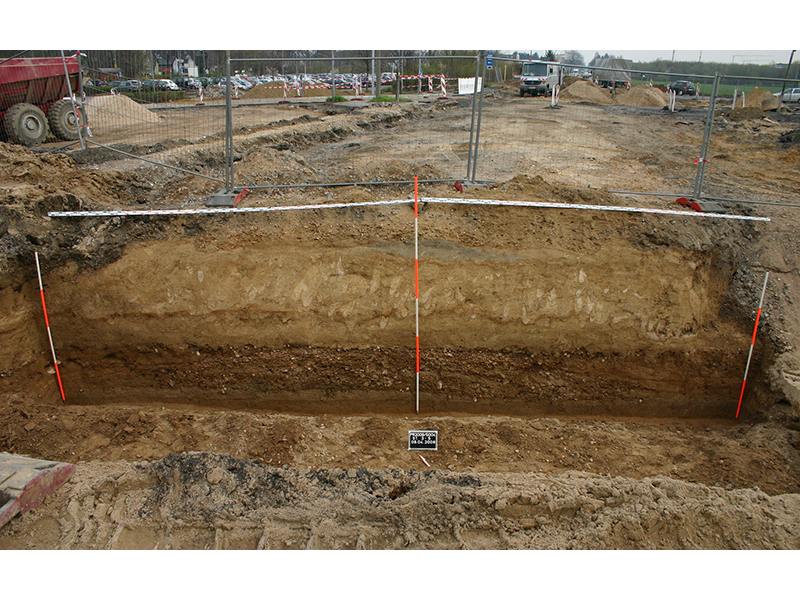 Die Anschüttungen über der Römerstraße stammen von der mittelalterlichen bis neuzeitlichen Weiternutzung der Straße. Deutlich zeigen sich auch hier tief eingegrabene Fahrspuren. Unmittelbar unter der heutigen Asphaltdecke findet sich das preußische Kopfsteinpflaster.