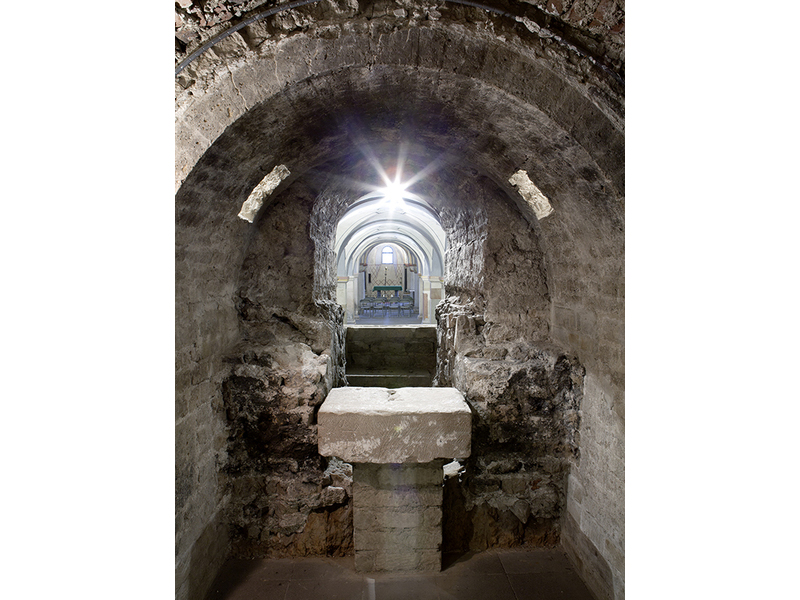 Das konservierte Grabungsgelände unter der Kirche ist Teil des großen südlichen Friedhofs zu beiden Seiten der Römerstraße. Es vermittelt ein eindrucksvolles Bild der Bestattungsformen in römischer und fränkischer Zeit. Gräber, Sarkophage und Grabbauten sind hier an ihrem ursprünglichen Ort zu besichtigen.