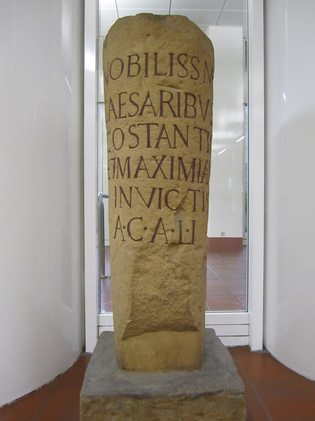 Am Straßenrand in Höhe der Greinstraße wurde ein römischer Meilenstein gefunden. Meilensteine, zwei bis drei Meter hohe Steinpfeiler, sind in erster Linie Distanzmesser. Sie dienen aber auch als Symbole der Herrschaft Roms und mit ihrer Inschrift als Instrumente kaiserlicher Propaganda. Sie kennzeichnen die Straßen, an denen sie aufgestellt sind, als Eigentum des Imperium Romanum. Heute kennt man über 4000, das sind aber noch keine 10 Prozent der einst an den Fernstraßen des Römischen Reiches aufgestellten Meilensteine.