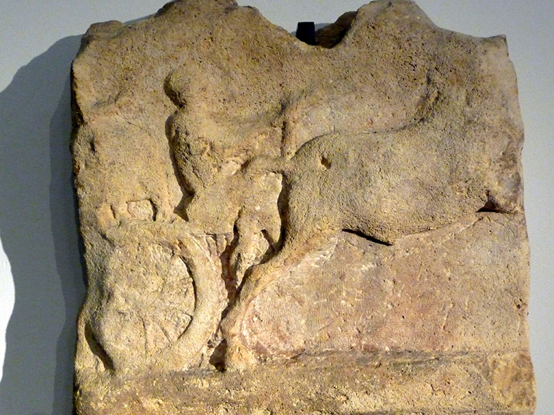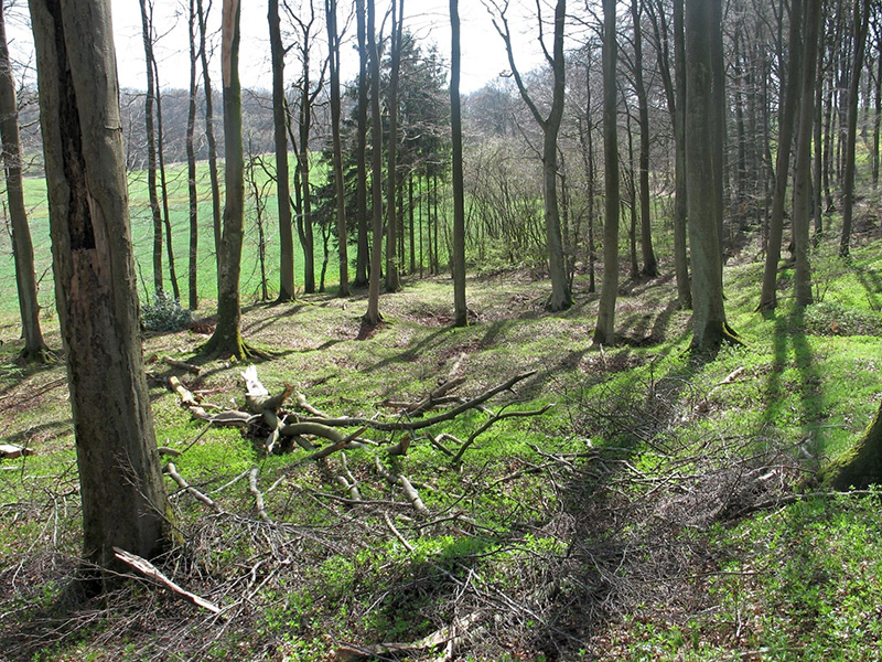 Deutlich im Fels sichtbar: Tief eingeschnittene Fahrspuren auf dem freigelegten Abschnitt der Agrippastraße zeugen davon, dass hier jahrelang Fuhrwerke wie Transport- oder Reisewagen verkehrten. Folgt man dem Weg Richtung Norden hin zum Urfttal, zeichnet sich im seitlich ansteigenden Hang in der Böschung der angeschnittene Damm der Römerstraße ab.